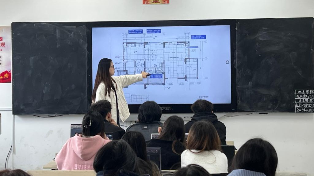 课堂上,蔡思甜老师围绕装饰工程施工图纸的核心要点展开教学,通过“图纸规范解读+案例实操分析”的方式,结合实际装饰工程案例,详细讲解了施工图纸的识读技巧、尺寸标注规范及与施工环节的衔接逻辑。她注重与学生互动,通过现场提问、小组讨论等形式引导学生主动思考,帮助学生快速掌握从图纸理解到实际应用的关键能力,课堂氛围活跃,教学目标达成度高。