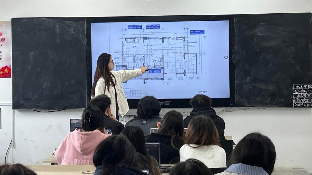 课堂上,蔡思甜老师围绕装饰工程施工图纸的核心要点展开教学,通过“图纸规范解读+案例实操分析”的方式,结合实际装饰工程案例,详细讲解了施工图纸的识读技巧、尺寸标注规范及与施工环节的衔接逻辑。她注重与学生互动,通过现场提问、小组讨论等形式引导学生主动思考,帮助学生快速掌握从图纸理解到实际应用的关键能力,课堂氛围活跃,教学目标达成度高。
