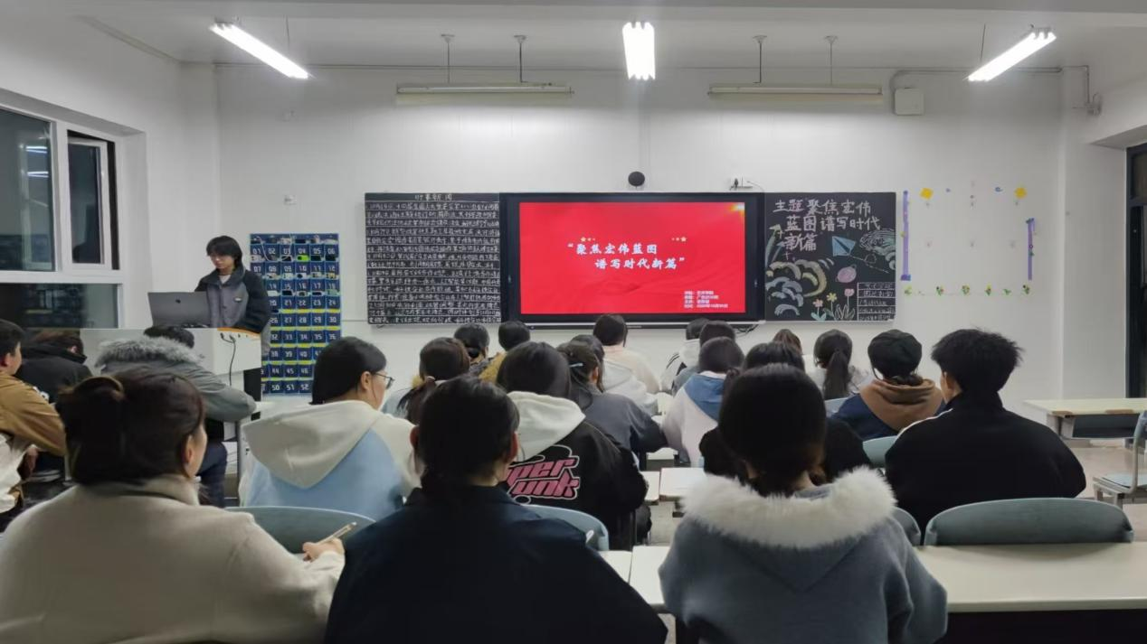为深入学习宣传贯彻党的二十届四中全会精神,引导学生坚定理想信念、锤炼品德修为,艺术学院于10月30日,在二教组织开展“聚焦宏伟蓝图 谱写时代新篇”主题团课。